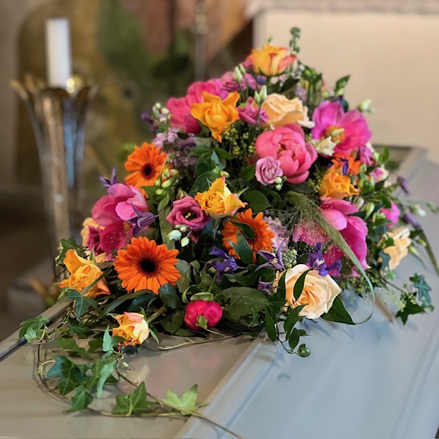Vi kan skapa kistdekorationer, urndekorationer, buketter, kransar, hjärtan eller om ni har andra idéer att få till. Vi kan följa dina önskemål eller om du vill ge oss fria händer att binda något passande.